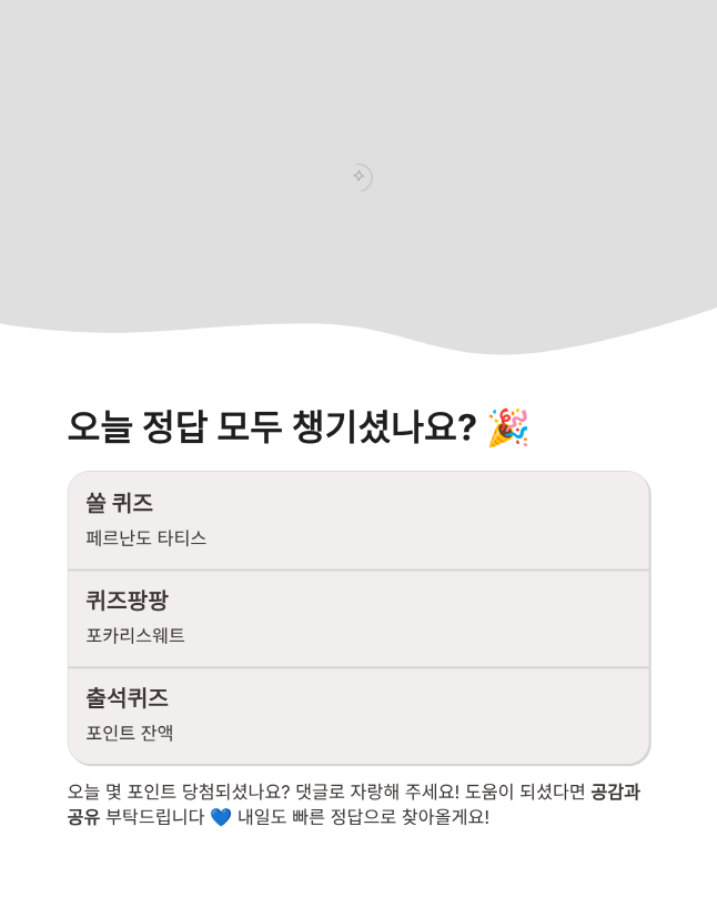 도움이 되셨다면 공감과 댓글 부탁드려요! 내일 아침에도 누구보다 빠르게 3월 14일 정답으로 찾아올게요.