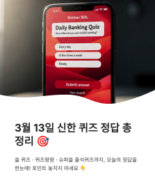 3월 13일 쏠 퀴즈 정답, 신한 쏠야구 퀴즈, 쏠페이 퀴즈팡팡, 슈퍼쏠 출석퀴즈, 앱테크 꿀팁, 마이신한포인트 적립, 오늘의 퀴즈 정답, 쏠퀴즈 정답, 신한플레이 퀴즈, 앱테크 추천