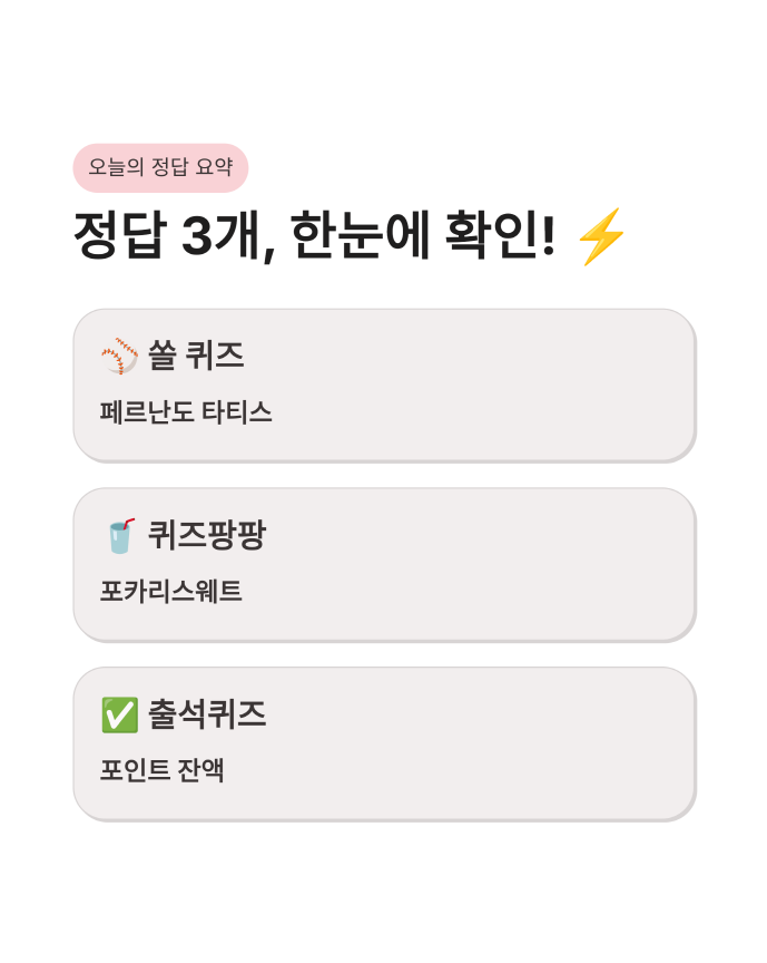 오늘 3월 13일 금요일, 신한 쏠 퀴즈를 포함한 모든 정답을 실시간으로 정리해 드립니다. KBO 리그를 거쳐간 도미니카공화국 선수와 앱테크로 쏠쏠하게 포인트 쌓는 방법, 궁금하지 않으신가요?