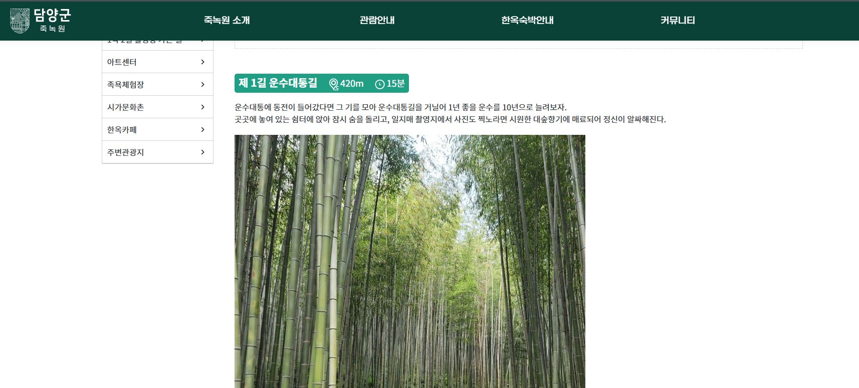 벚꽃 외 죽녹원(대나무숲, 도보 10분) 연계 가능.