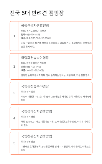 🏕️ 전국 5대 반려동물 동반 국립캠핑장 가이드