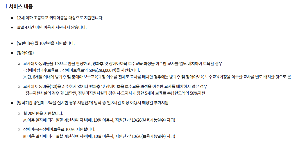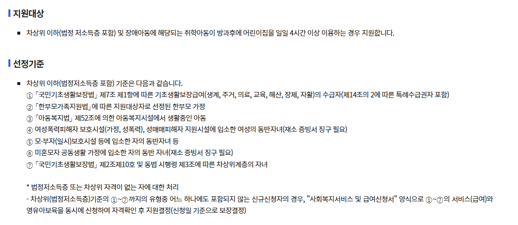 방과후 보육료 지원및 신청 안내