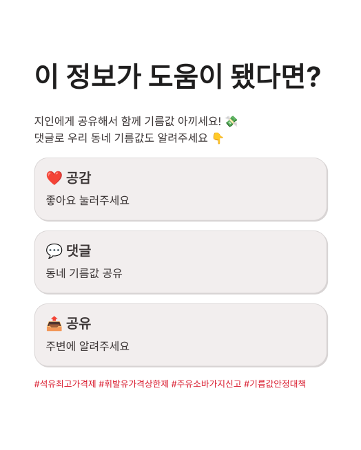 기름값 걱정 없는 세상이 하루빨리 오기를 바라며, 오늘 정보가 여러분의 지갑 건강에 도움이 되었기를 바랍니다. 정부의 강력한 의지와 우리 국민의 감시가 더해진다면 분명 좋은 결과가 있을 거예요.