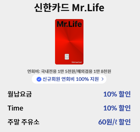 - 주유 리터당 80원 할인: 주요 주유소 이용 시 할인