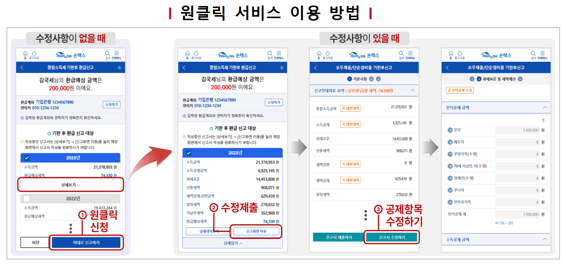 ✔️ 신속한 환급 처리: 수정 없이 신청하면 1개월 이내, 수정 후 신청하면 2~3개월 이내 지급