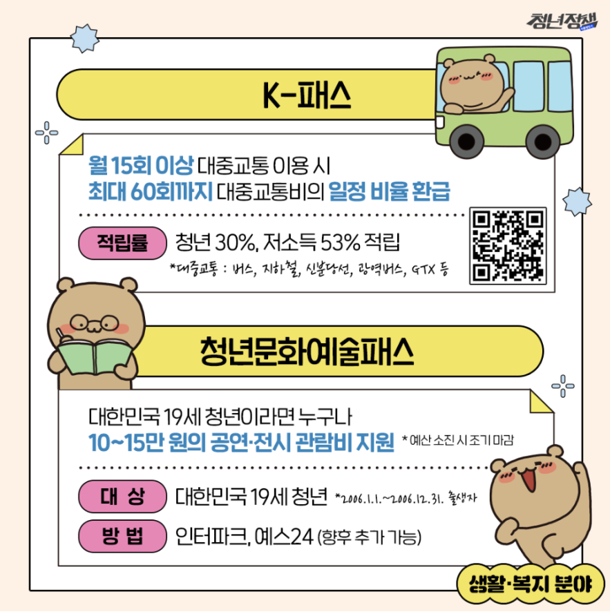 이러한 정책들은 청년들의 교통비 부담을 줄이고, 문화생활을 풍요롭게 하는 데 기여할 것으로 기대됩니다.