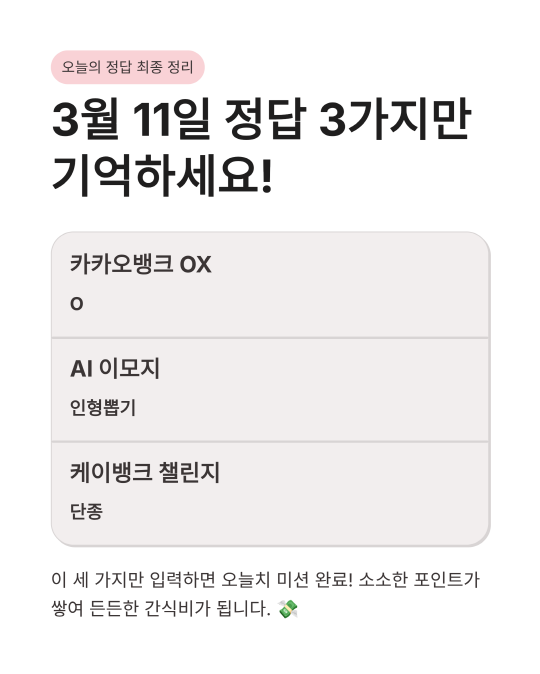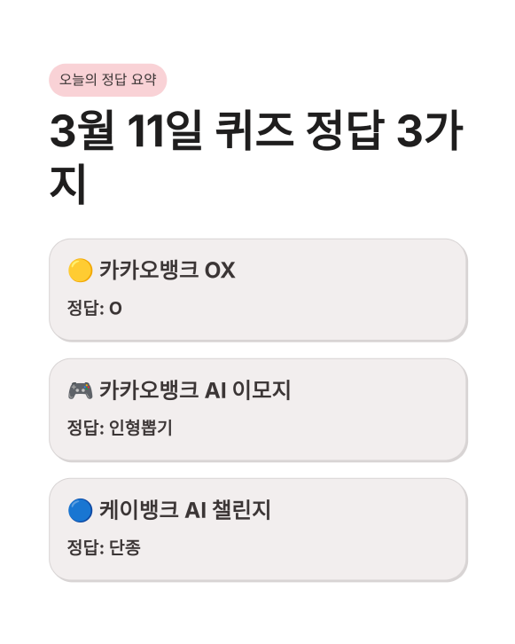🟡 3월 11일 카카오뱅크 OX 퀴즈 및 AI 이모지 정답 공개