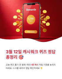 🔹 3월 12일 캐시워크 퀴즈정답 소휘 및 금융권 리워드 정보