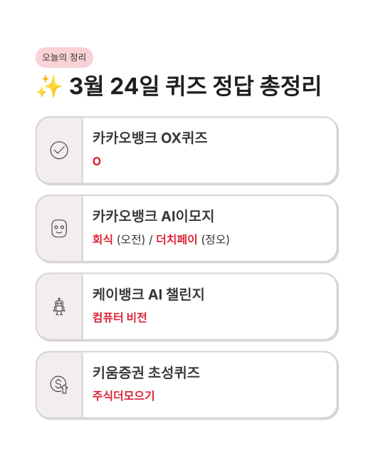 🎯 3월 24일 카카오뱅크 OX AI이모지 케이뱅크 AI퀴즈 챌린지 정답 모음